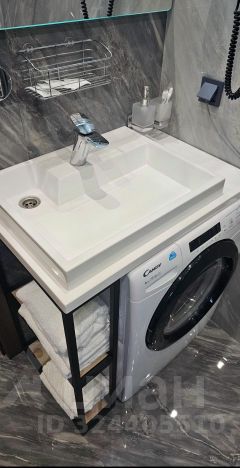 - Ванная комната с душевой кабиной и стиральной машиной.