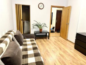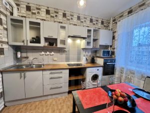 В квартире выполнен евроремонт, что делает её готовой к комфортному проживанию. В кухне площадью 9,8 кв. м есть вся необходимая мебель(диван раскладывается) и техника: включая холодильник,стиральную машинку ,духовой шкаф и микроволновую печь.В жилой комнате площадью 16,5 кв. м также имеется мебель(диван двуспальный),комод,журнальный столик).Раздельный санузел в кафельной плитке.Плитка на полах в коридоре(с подогревом),,кухне;в комнате-ламинат.