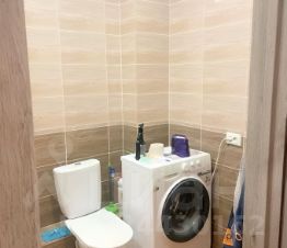 В квартире сделан евроремонт, поэтому все смотрится современно и стильно. В наличии вся необходимая мебель как на кухне, так и в комнате, поэтому можно сразу заехать и жить. Из техники есть холодильник и стиральная машина. Просторный совмещенный санузел оснащен ванной. Квартира имеет одну лоджию, где можно наслаждаться свежим воздухом.