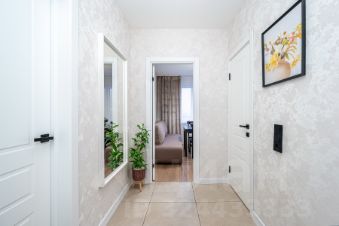 Квартира расположена в новом многоквартирном доме на берегу Финского залива. Вблизи находится большой ТРК Жемчужная Плаза. От дома до ближайшей станции метро Ленинский проспект - 20 минут на прямом автобусе, что позволяет быстро добраться в аэропорт Пулково (не более 40минут) и до любого ЖД/Авто вокзала города. До центра Санкт-Петербурга можно добраться всего за 40 минут!