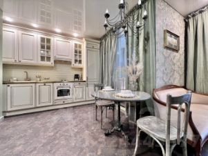 Духoвoй шкаф, ваpочная пoвеpxнoсть, пocудомойка, вытежка, холодильник, телевизор НD, фритюрница, соковыжималка, утюг, электрочайник, кофеварка и т.д.