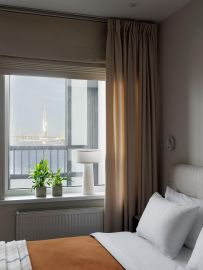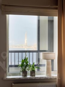 Квартира расположена по адресу: ул. Уральская, д. 21, корп. 1. Это престижный район с впечатляющими видами из окон. Главная особенность - панорамные окна с видом на залив, Газпром Арену и Лахта Центр. Вы сможете наслаждаться прекрасными пейзажами, не выходя из дома.