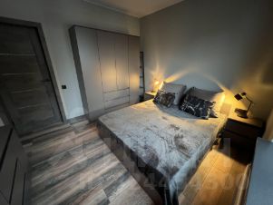 Спальня оборудована двуспальной кроватью с ортопедическим матрасом, вместительными гардеробными шкафами и комодом.