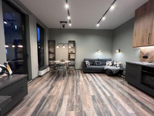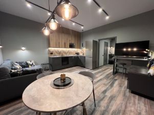 Качественная отделка премиальными материалами, абсолютно новая мебель и встроенная техника, потолки 3 метра.