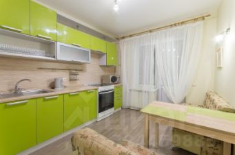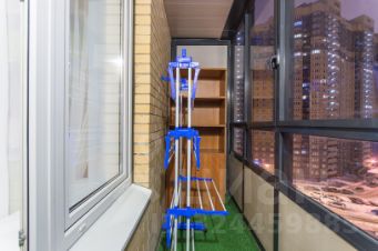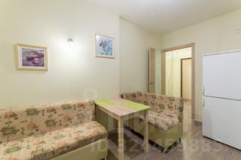 Кухня оборудована ярким гарнитуром, холодильником, электрической плитой, СВЧ-печью, столом и диванчиками. Выход на обустроенную лоджию - из кухни. Там же расположена удобная сушилка. Дополнительной подсветкой оборудована как обеденная зона кухни, так и лоджия.