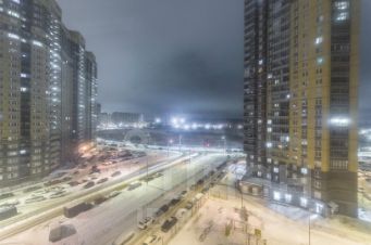 Окна - в широкий открытый двор, проезжая часть остается в стороне.
