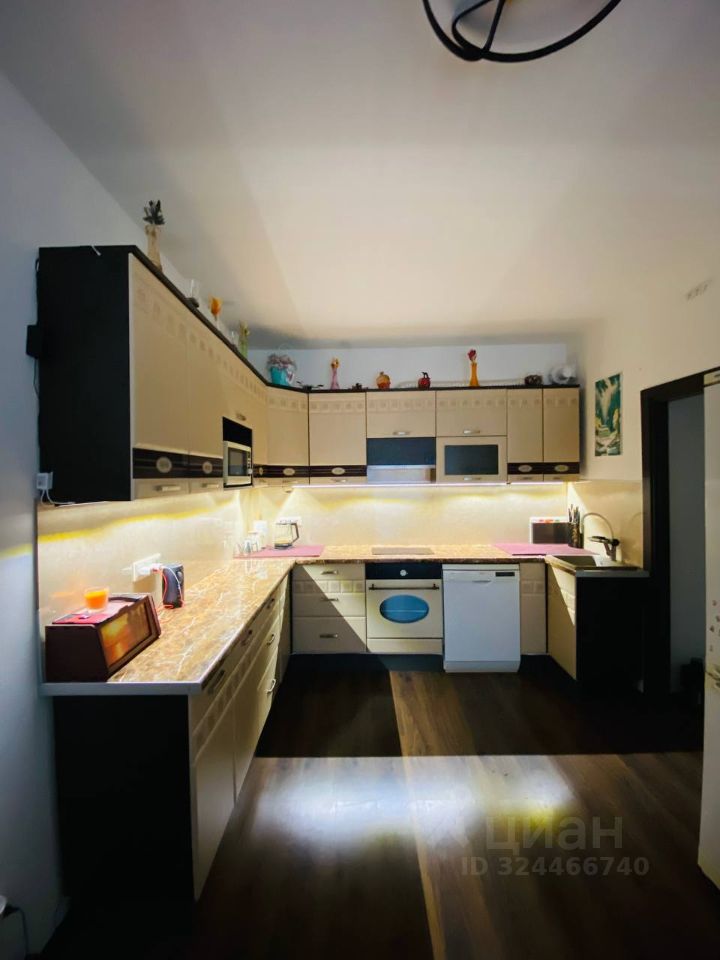 —Просторная кухня-гостиная полностью укомплектована всей необходимой мебелью и техникой; освещение по зонам.
