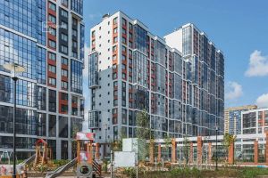 Рядом — ещё два больших парка с велодорожками, игровыми зонами и прудами. В ЖК — собственный детский сад, спортивные и детские площадки, подземная и наземная парковки. На первых этажах — рестораны, кофейни, маркетплейсы, магазины, поблизости — две школы.