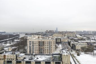 Высокие потолки добавляют объёма и лёгкости, а из окон открываются впечатляющие виды на Лахта-центр, стадион и панораму города