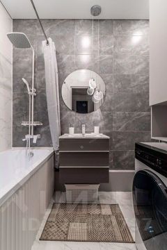 - В санузле: ванна с тропическим душем, раковина, стиральная машина с функцией сушки, встроенный шкаф для хозяйственных нужд.