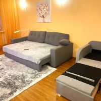 Квартира светлая общей площадью 42,7 кв.м., жилая комната 21 кв.м., кухня 11 метров с выходом на лоджию с панорамным остеклением. Санузел раздельный. Компактная прихожая. В жилой комнате двуспальный диван и дополнительное спальное место кресло-кровать, телевизор, места для хранения; кухня оборудована мебелью и бытовой техникой(холодильник, стиральная и посудомоечная машина). Предлагаем для одного, пары, возможно с ребенком, без домашних питомцев. Документы прошли юридическую проверку.