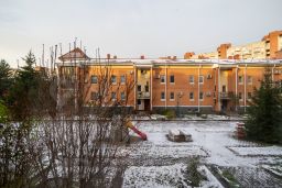Дом в зелёном дворе, очень много деревьев, детские и спортивные площадки, охрана.