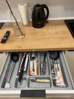 В квартире есть Телевизор, Микроволновка, машинка стиральная, утюг и вся необходимая посуда....