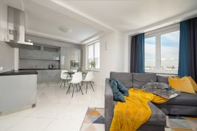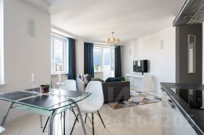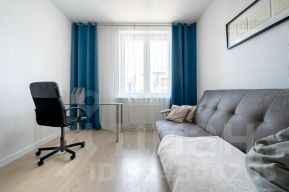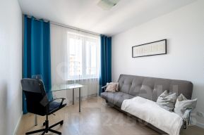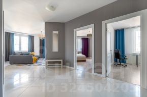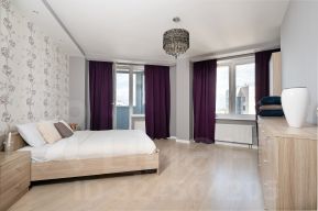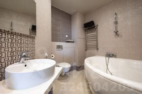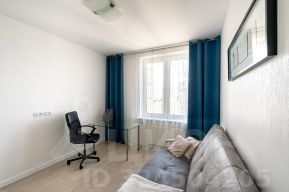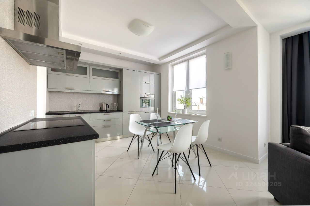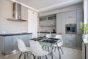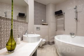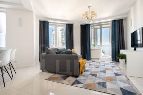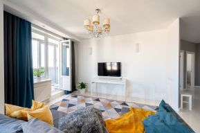 На кухне: варочная панель, посудомойка 45см, духовка, микроволновка; обеденный стол со стульями. В гостиной зоне: диван и телевизор. В спальне кровать со шкафчиком и комод. Во второй комнате: рабочее место и раскладной диван, шкаф. В ванной большая ванна, стиральная машинка, инсталляция и раковина.