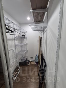В большой гардеробной установлена система хранения.