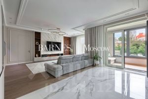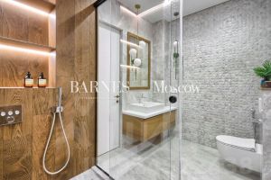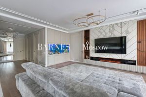 В квартире произведён дизайнерский ремонт по эксклюзивному проекту с использованием дорогостоящих материалов. Мебель изготовлена на заказ, фасады на кухне открытие-закрытие с прикосновения, техника премиального уровня Kuppersbusch.