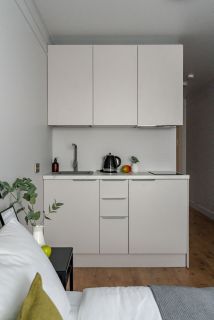 - полностью оборудованная кухня с современной бытовой техникой (холодильник, варочная панель, вытяжка, микроволновка, электрический чайник, капсульная кофемашина). Гостям предоставляется полный комплект посуды, столовые приборы, встроенный фильтр для питьевой воды, кухонные принадлежности;
