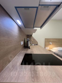 2 объединяемые односпальные кровати с удобным матрасом и нишами для хранения, кухня с электрической варочной панелью, вытяжкой, небольшой холодильник и множество секций хранения, обеденный столик, рабочее место, утюг с гладильной доской, шторы black-out, а также вся необходимая посуда и столовые приборы.