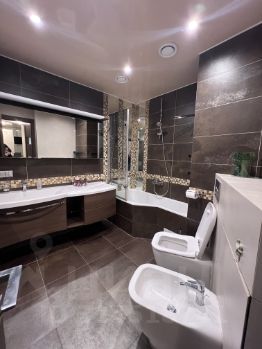Квартира полностью обставлена мебелью и оснащена всей необходимой техникой. В светлой кухне есть мебель и современная техника: посудомоечная и стиральная машины, холодильник и кондиционер. В комнатах также имеется мебель, телевизор, а наличие двух отдельных санузлов делает проживание ещё более комфортным. Из окон открывается вид во двор.