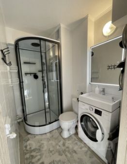 В квартире выполнен дизайнерский ремонт, который подчёркивает современность и функциональность пространства. В кухонной зоне есть вся необходимая мебель, чтобы вы могли сразу приступить к приготовлению любимых блюд. Из техники в вашем распоряжении холодильник, телевизор и стиральная машина. В ванной комнате — удобная душевая кабина.