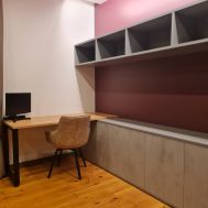 Вторая комната с раскладным диваном, рабочей зоной и винилом.