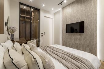 Гардеробная, вместительная кухня, современный санузел с душевой. Квартира полностью укомплектована мебелью и техникой по дизайн-проекту.