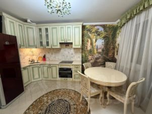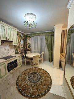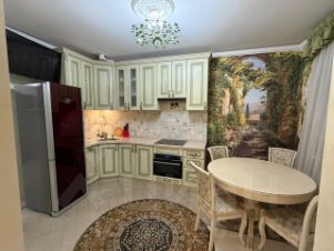 В квартире есть все необходимое для комфортного проживания. Просторная кухня оборудована современной мебелью и бытовой техникой, включая холодильник и посудомоечную машину. В комнате установлена удобная мебель и телевизор. Ванная комната оснащена душевой кабиной и стиральной машиной. Также в квартире подключен интернет, а окна выходят во двор.