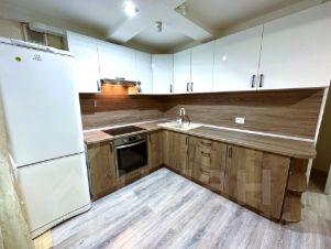 -- современная встроенная кухня со всей необходимой техникой: духовой электрический шкаф, варочная панель, вытяжка, холодильник