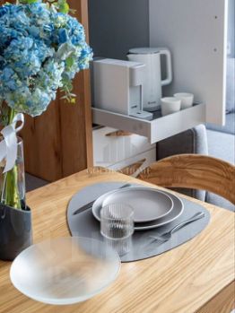 Квартира полностью оснащена всем необходимым для вашего удобства. В ней есть посудомоечная и стиральная машины, холодильник, чайник, микроволновка, варочная панель, кофемашина. Также вы найдете пылесос, утюг, телевизор, Wi-Fi роутер, фильтр для воды, кондиционер и другие полезные вещи.