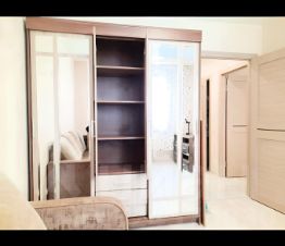 В спальне- раскладной угловой диван, 3- дверный шкаф- купе.