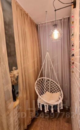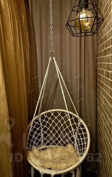 Уютная лоджия с подвесным креслом для отдыха,