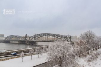 Панорамные виды, достойные кисти художника: Восемь окон этой угловой квартиры словно живые картины, сменяющие друг друга в зависимости от времени суток. Из окон открывается завораживающий вид на величественную Неву и изящный мост Императора Петра Великого. Другие четыре окна гостиной, кухни-столовой и еще одного кабинета предлагают насладиться видом на устремленный ввысь Смольный собор и элегантное здание Правительства Петербурга.