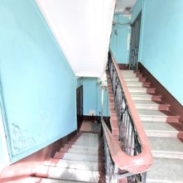 На общей кухне есть отдельная стиральная машина, холодильник, газовая плита, тумба для хранения кухонной утвари и приготовления пищи, навесной шкаф и замечательный стол со стульями. Места общего пользования раздельные. В ванной комнате отдельная полка.