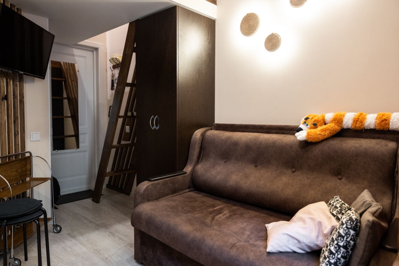 Студия очень тёплая. Хорошая шумоизоляция и вентиляция. Сильный напор воды. Достаточное количество горячей воды!