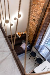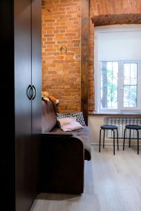 Качественный, дизайнерский ремонт, удобная планировка, система "тёплого пола" в санузле. Потолки 2,9 м. Окно в тихий дворик. Кухонный блок. Широкий подоконник. Обработанная кирпичная кладка оригинальная 1879 года. Складная лестница на 2 этаж (ручная работа).
