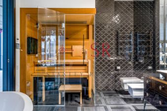 - мастер-спальня с большой ванной комнатой (оснащена сауной) и гардеробной комнатой,
