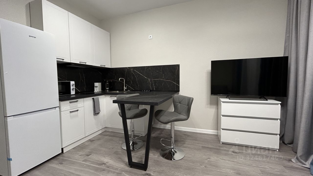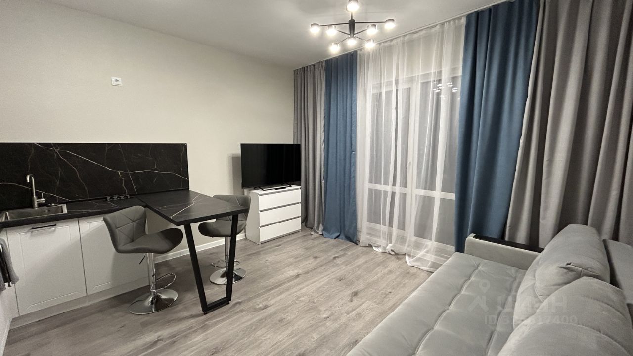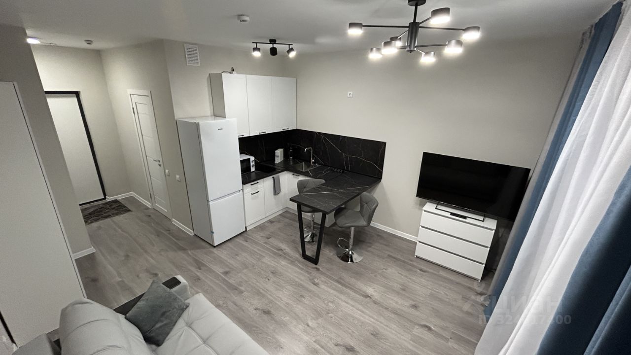 Предлагаем к аренде стильную и уютную студию в новом доме в районе Бугры. Квартира находится на высоком 19 этаже 22-этажного дома, что гарантирует прекрасный вид и обилие света.