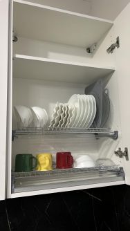• Кухня: Модульная кухня с индукционной варочной панелью, вытяжкой, полноразмерным холодильником, микроволновкой, чайником и капсульной кофемашиной для идеального начала дня.