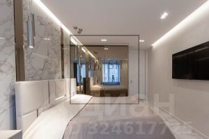 В квартире сделан свежий дорогостоящий качественный дизайнерский ремонт. Установлена вся необходимая техника. Окна спальни выходят в тихий двор, спальня изолирована. Стоит двуспальная кровать с ортопедическим матрасом, большой телевизор в спальне и гостиной, винный шкаф, беговая дорожка, духовой шкаф совмещенный с СВЧ печью, сейф.