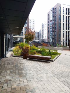 Общие зоны в идеальном состоянии, видеонаблюдение, закрытая территория корпуса. В перспективе 1 года планируется закрыть от машин всю дворовую территорию комплекса.
