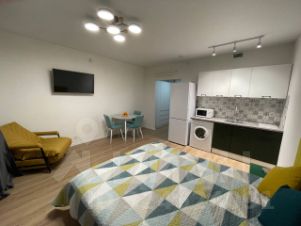 В студии выполнен дизайнерский ремонт, а значит, вас порадует стильная и современная обстановка. В комнате и на кухне есть вся необходимая мебель. Из техники в вашем распоряжении: холодильник, телевизор со SMART-TV и стиральная машина, душевая кабина, шторы с эффектом Black out, раскладное кресло-диван.