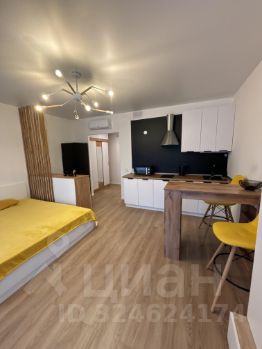 Студия оснащена всей необходимой мебелью, стиральной машиной, холодильником, микроволновой печью, а также незаменимым летом КОНДИЦИОНЕРОМ! Проведен интернет.