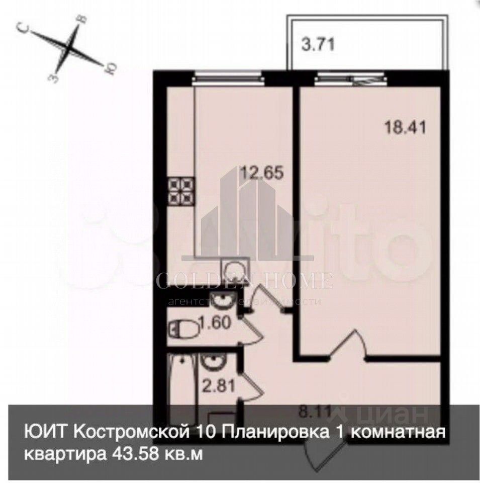 Арт. 127195663 Предлагается к сдаче просторная однокомнатная квартира в ЖК "Костромской 10"