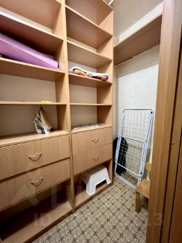 - в комнате расположена вместительная гардеробная/кладовая с полками, ящиками и рейлингом,