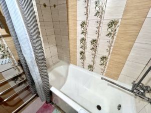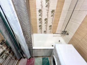 - аккуратной ванной, стиральной машиной и современным полотенцесушителем,