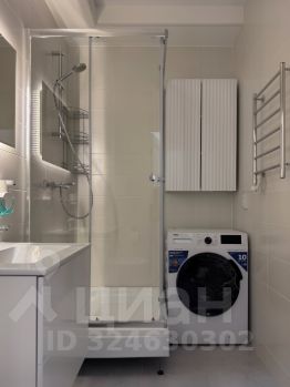 — в ванной установили новое стеклянное ограждение и новый поддон, смеситель с термостатом, большое зеркало с красивой подсветкой и электрический полотенцесушитель, который никогда не протечёт.