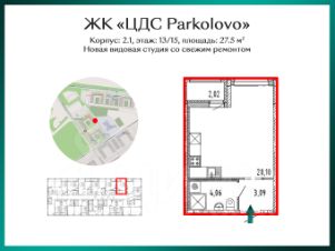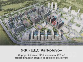 Сдаётся в аренду абсолютно новая, чистая, уютная, видовая студия с ХОРОШИМ СТИЛЬНЫМ РЕМОНТОМ, c пoлной кoмплeктaцией мебeлью и всей техникой в новом ЖК ЦДС Parkolovo.