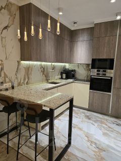 Дорогая встроенная техника ВОSН , стиральная и сушильная машина, посудомоечная машина 60см, микроволновая печь и духовка все ВОSН . Автоматическая кофеварка, 3 огромных телевизора.