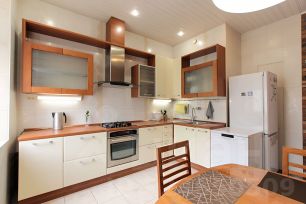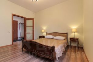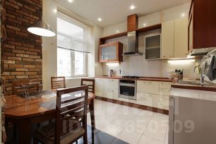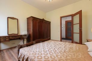 В квартире только что произведен качественный косметический ремонт, вся мебель из натурального дерева. На кухне установлена итальянская встроенная кухня, вся встроенная бытовая техника также из Италии. Также в каждом помещении установлены кондиционеры. В квартире две изолированные спальные комнаты, большая гостиная с двумя окнами. Вид из окон на три стороны. Квартира находится на 5 этаже хорошего сталинского дома, в котором имеется лифт.