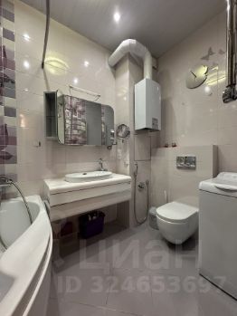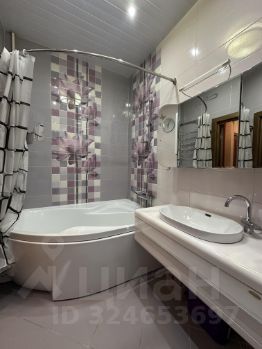 В ванной комнате большая ванная, стиральная машина и теплый пол.